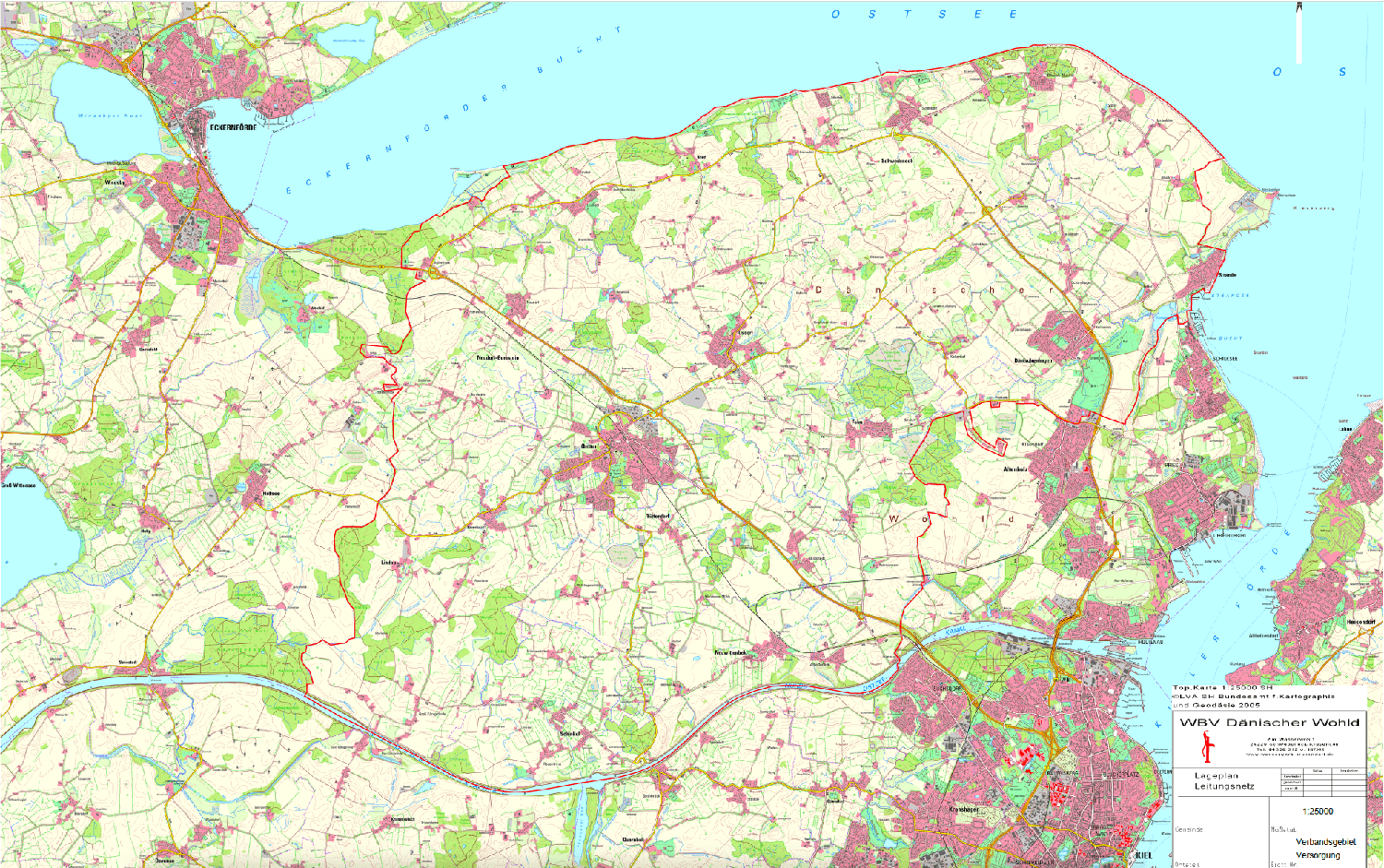 Das Versorgungsgebiet des Verbandes im Dänischen Wohld umfasst das Gebiet der korporativen Mitgliedsgemeinden in